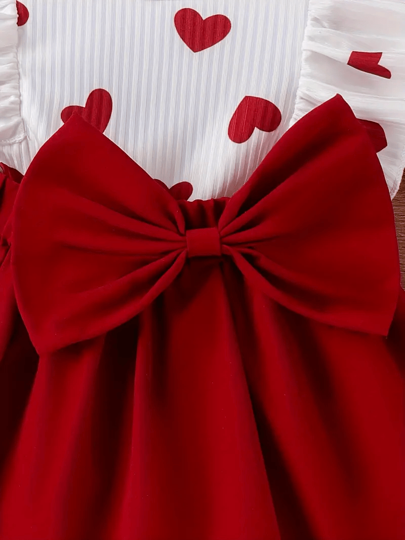 Baby Girl Short Sleeve Love Print Bow Dress A charming short-sleeve dress featuring a love print design with a cute bow accent. Made for comfort and style, this dress is perfect for casual outings, parties, and playtime. Designed for baby girls, it offers a soft and breathable fabric for all-day wear.