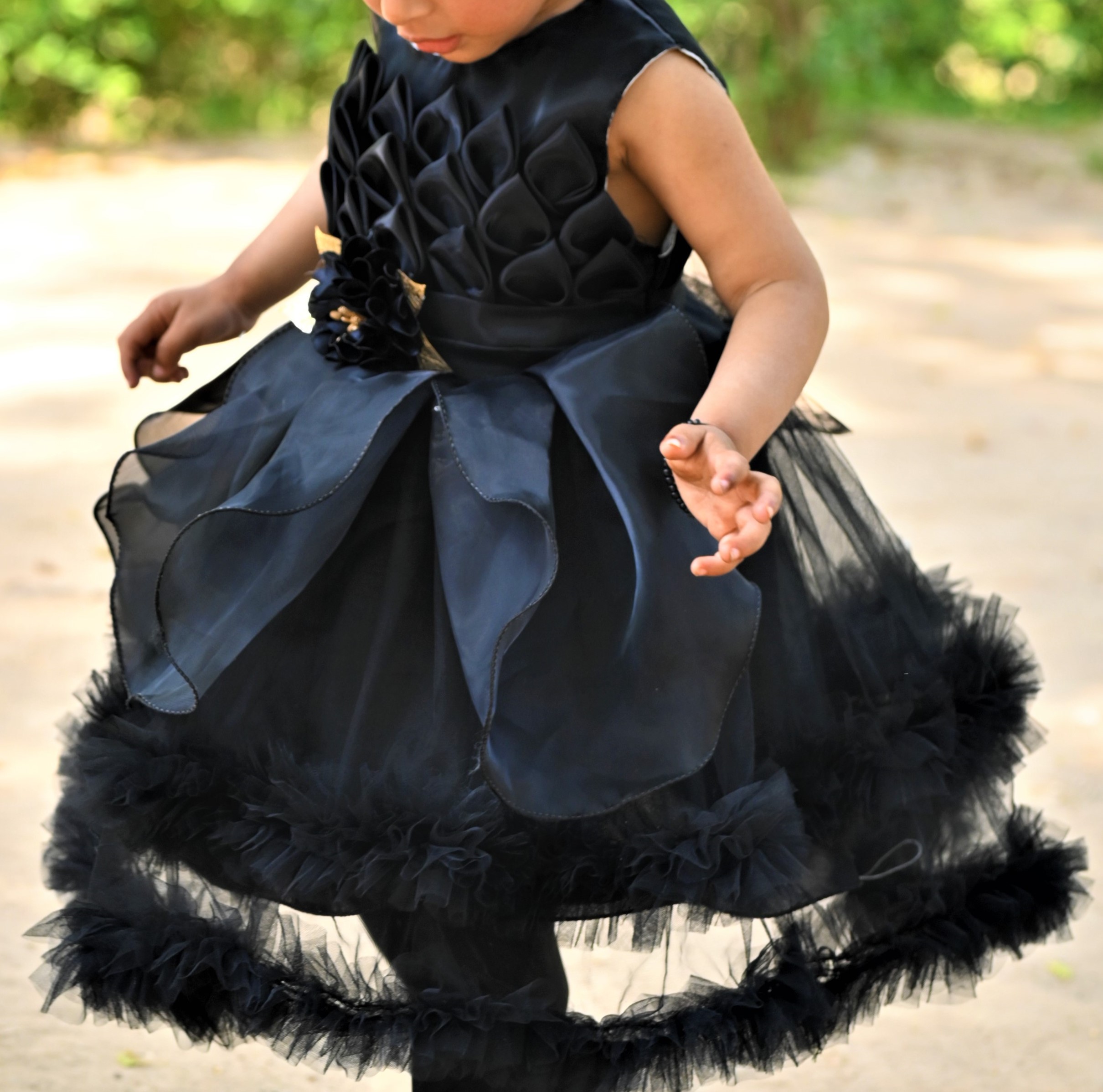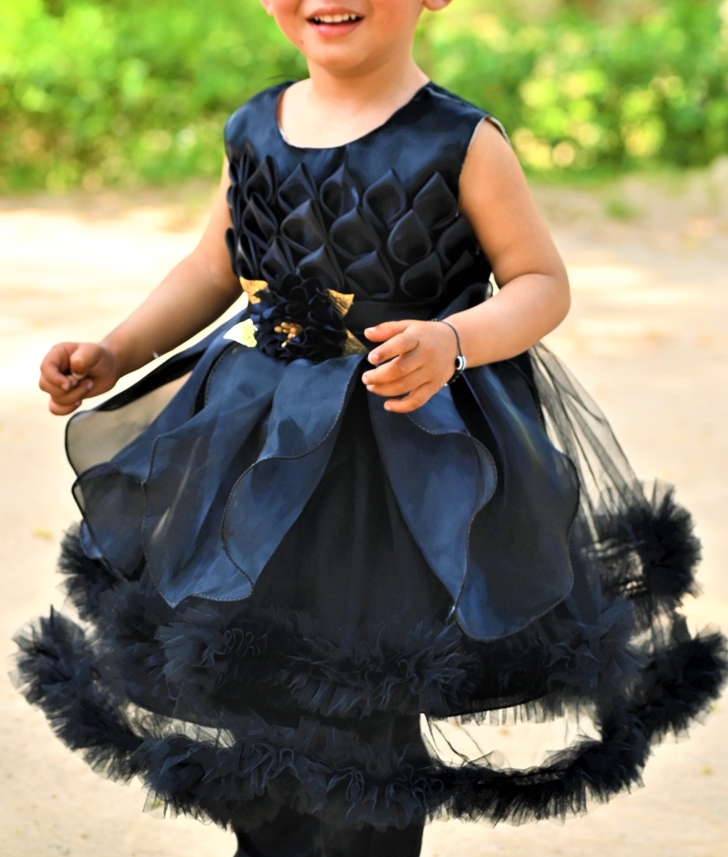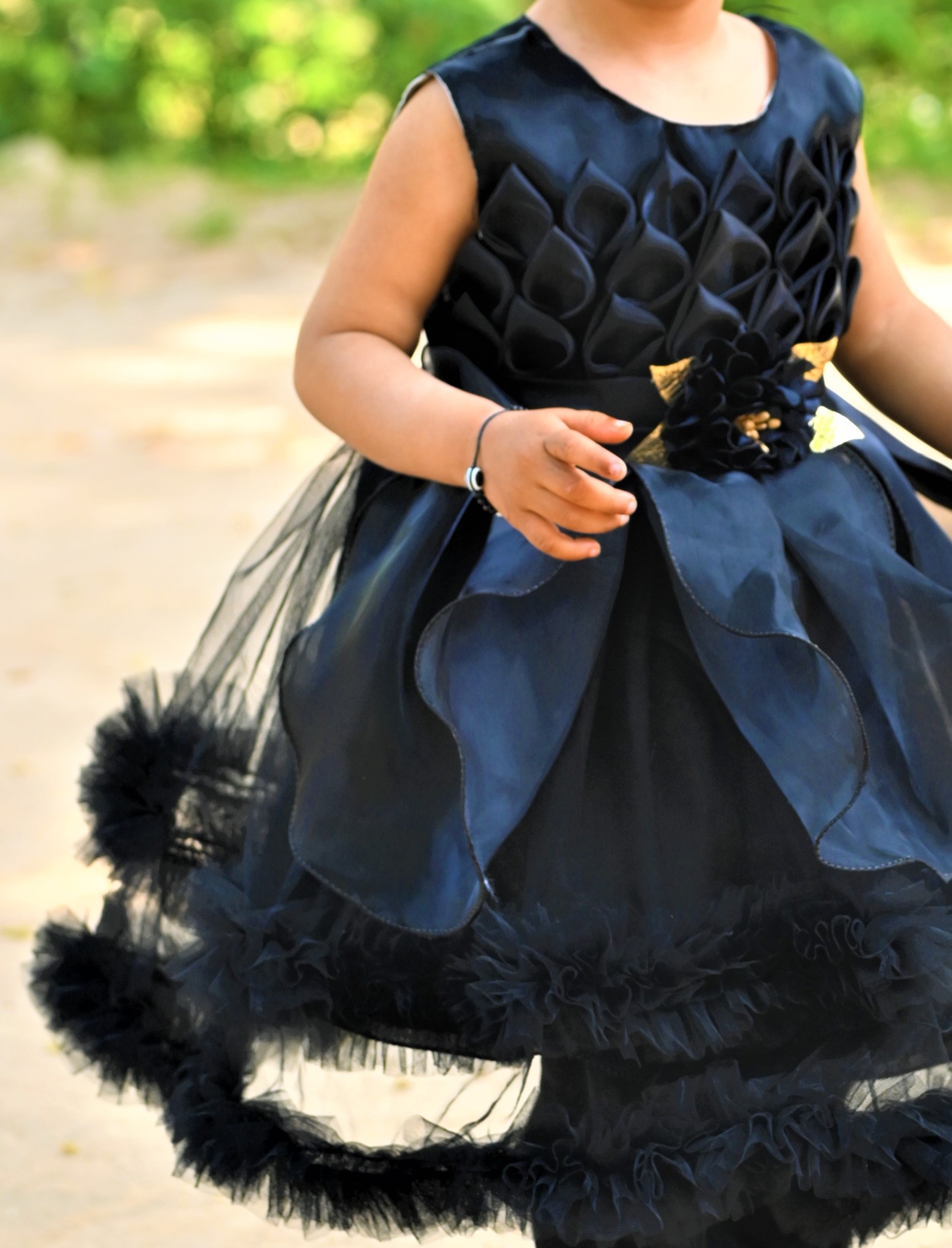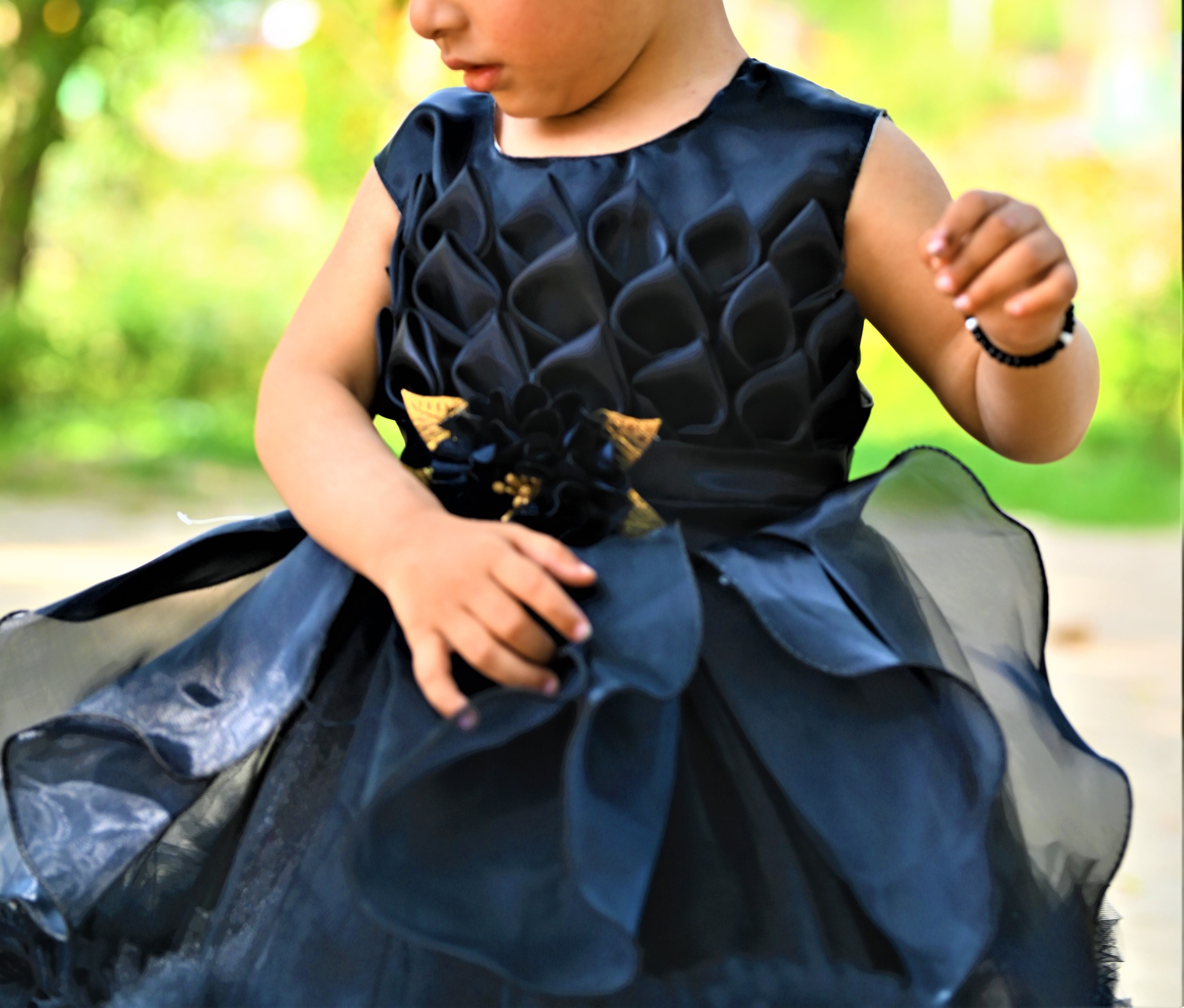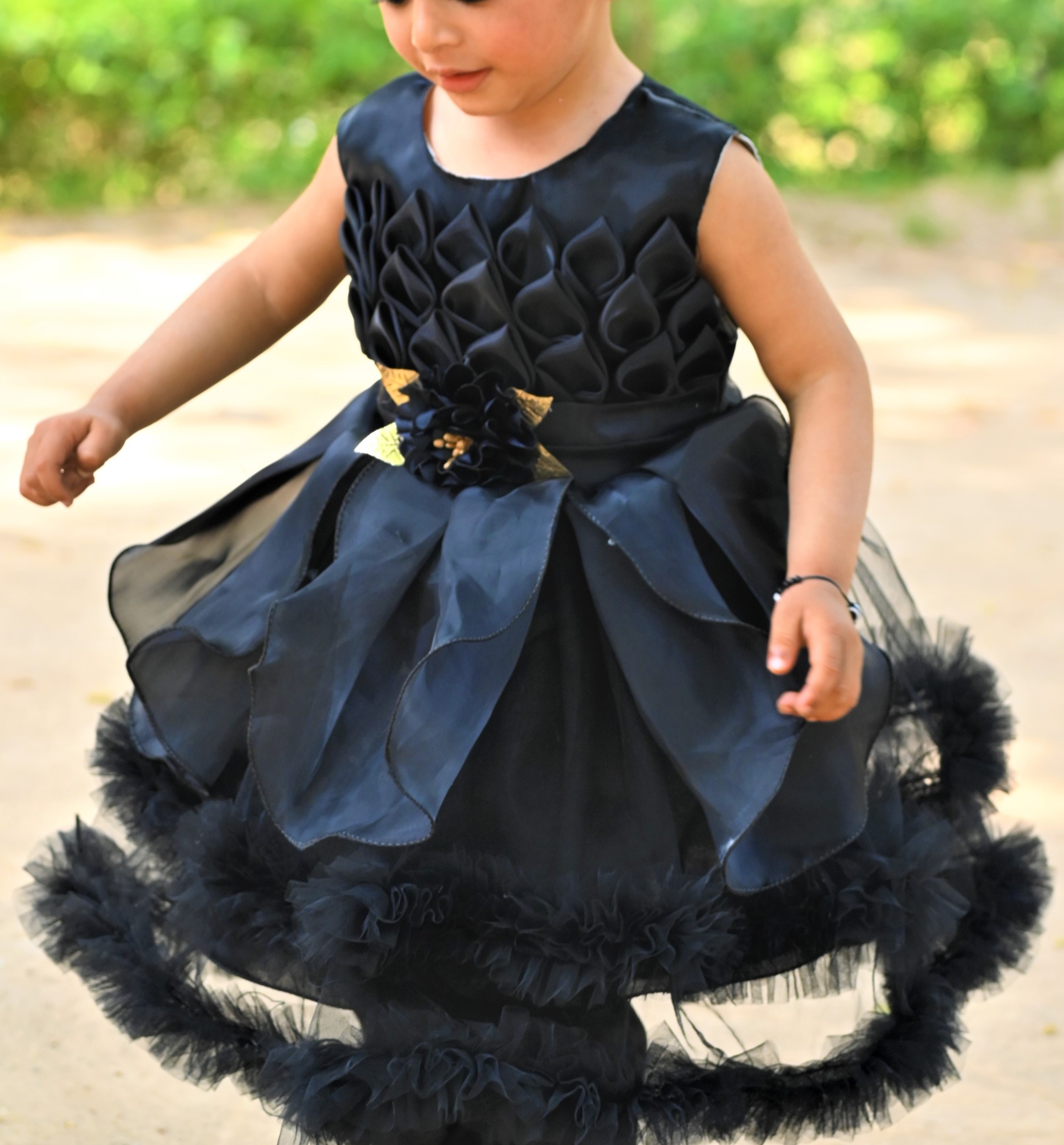 Make your baby girl the center of attention with this Elegant Black Baby Girl Party Dress. Crafted with premium-quality fabric, this dress features a beautifully layered ruffled skirt, a stylish sleeveless bodice, and intricate detailing that adds a touch of glamour. Perfect for birthdays, weddings, Eid, and special events, this dress ensures comfort and style for your little fashionista.