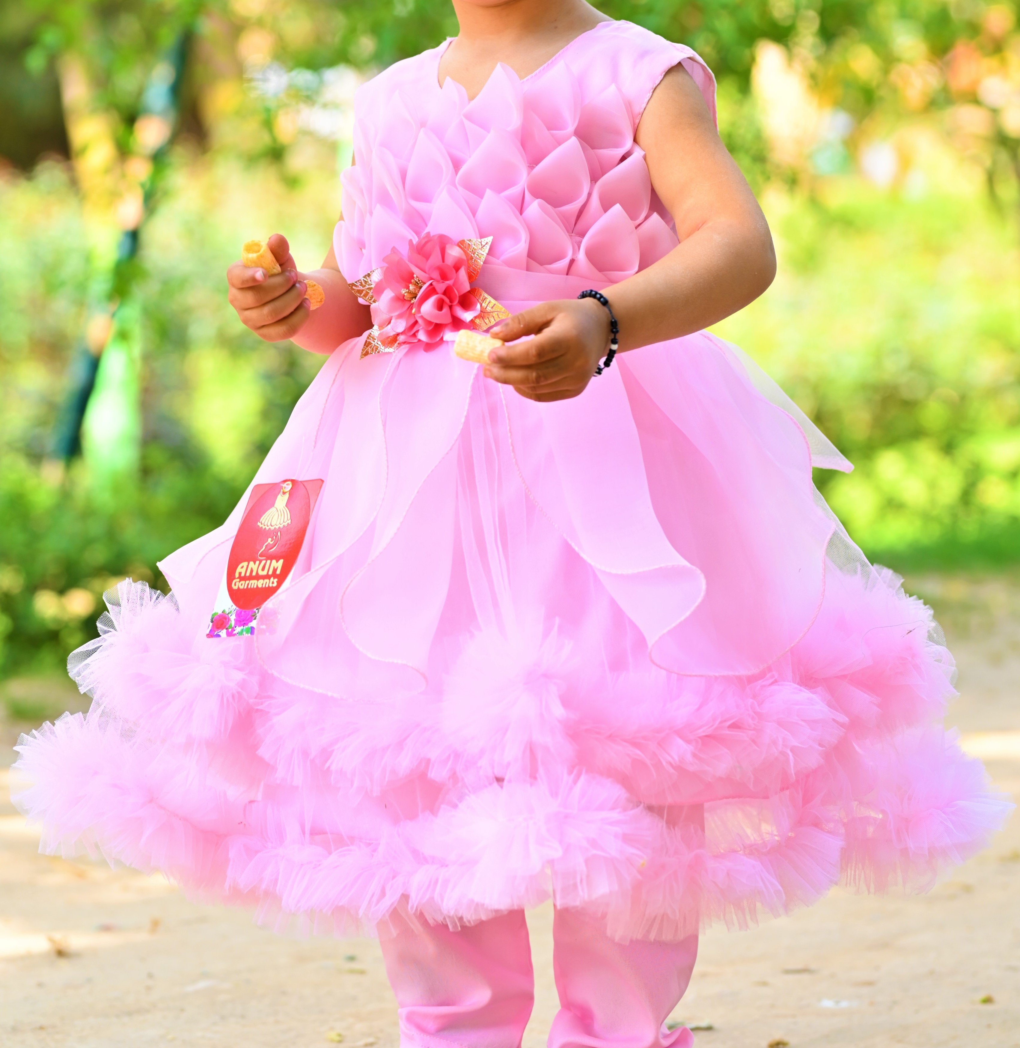 Make your baby girl the center of attention with this Elegant Pink Baby Girl Party Dress. Crafted with premium-quality fabric, this dress features a beautifully layered ruffled skirt, a stylish sleeveless bodice, and intricate detailing that adds a touch of glamour. Perfect for birthdays, weddings, Eid, and special events, this dress ensures comfort and style for your little fashionista.