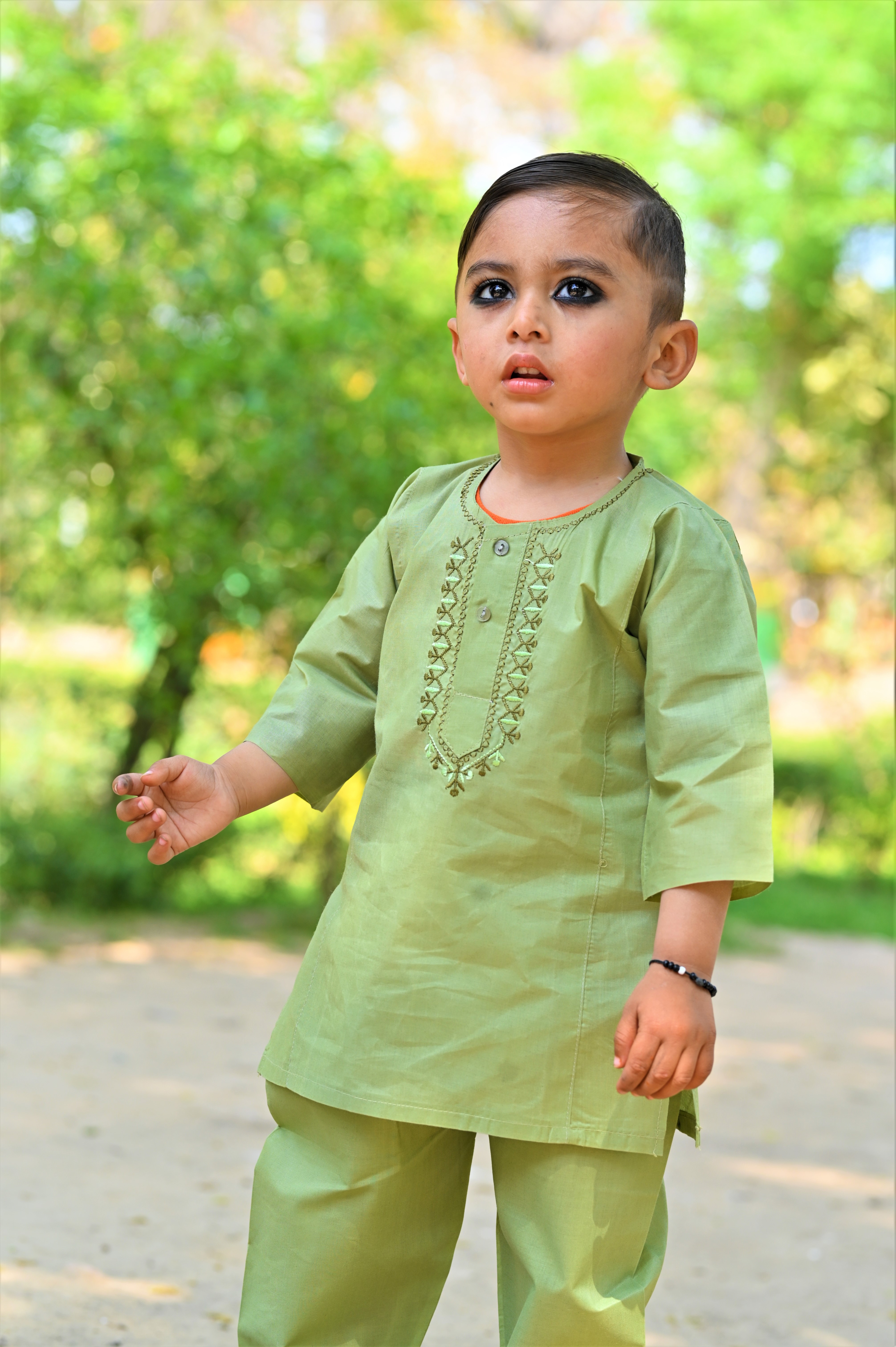 Leafy Green Baby Boy Shalwar Kameez with Embroidered Neck β A stylish and traditional outfit for boys aged 6 months to 4 years. Made with soft, high-quality fabric in an elegant leafy green shade, featuring intricate embroidery on the neck. Perfect for Eid, weddings, and cultural events. Available in multiple sizes with comfortable stitching for a perfect fit. πΈ Sizes: 6M - 4Y πΈ Premium Fabric & Embroidery πΈ Ideal for Special Occasions
