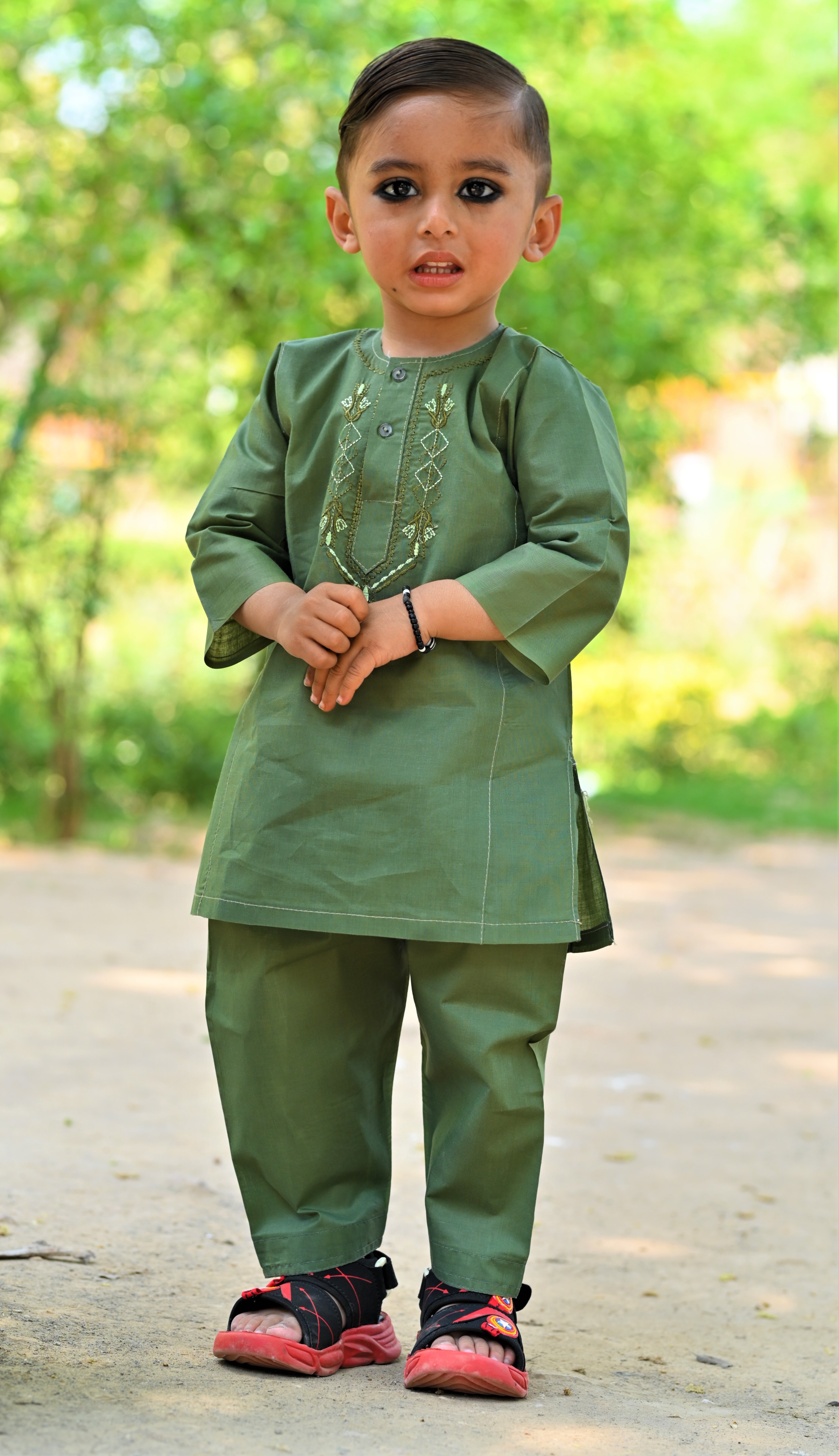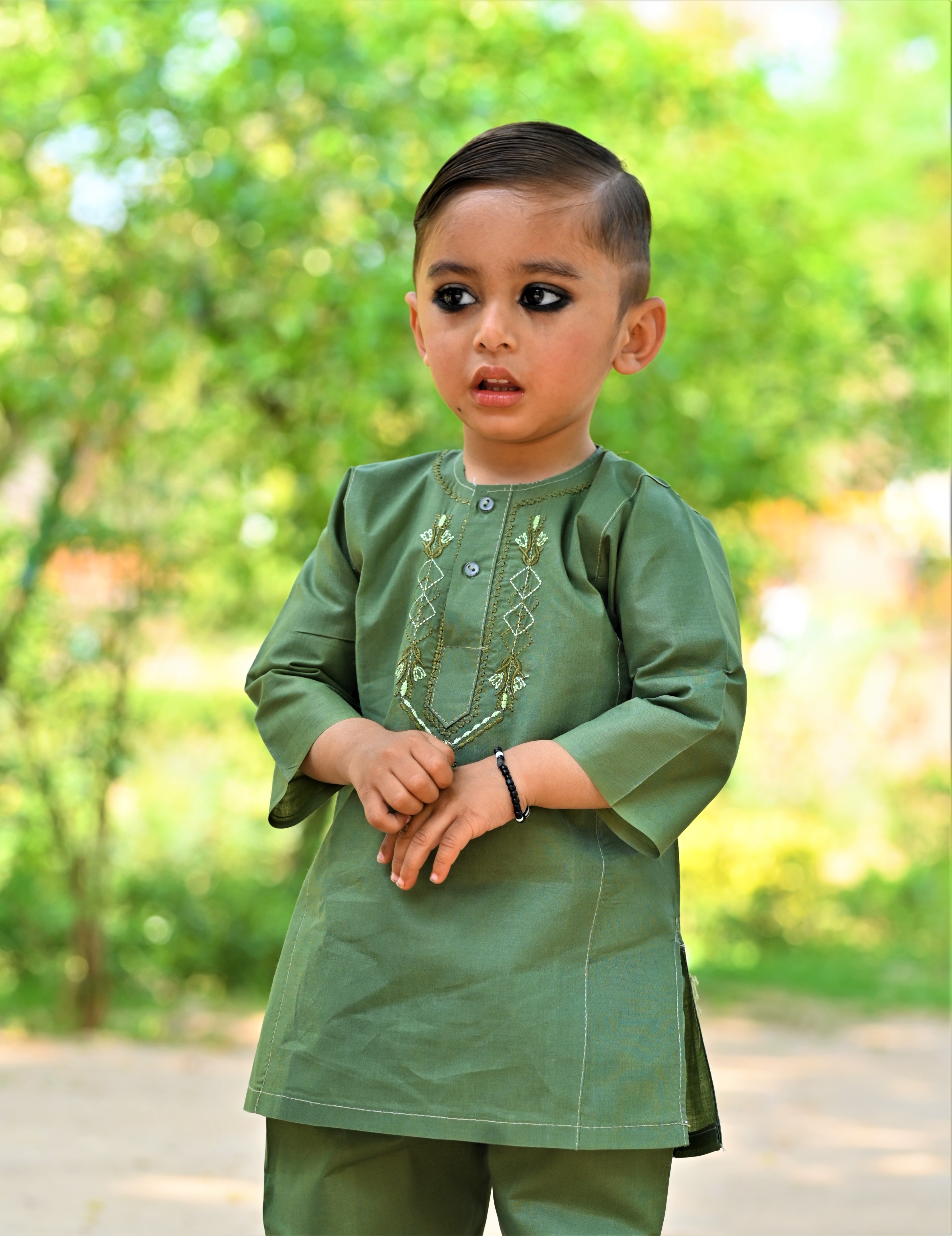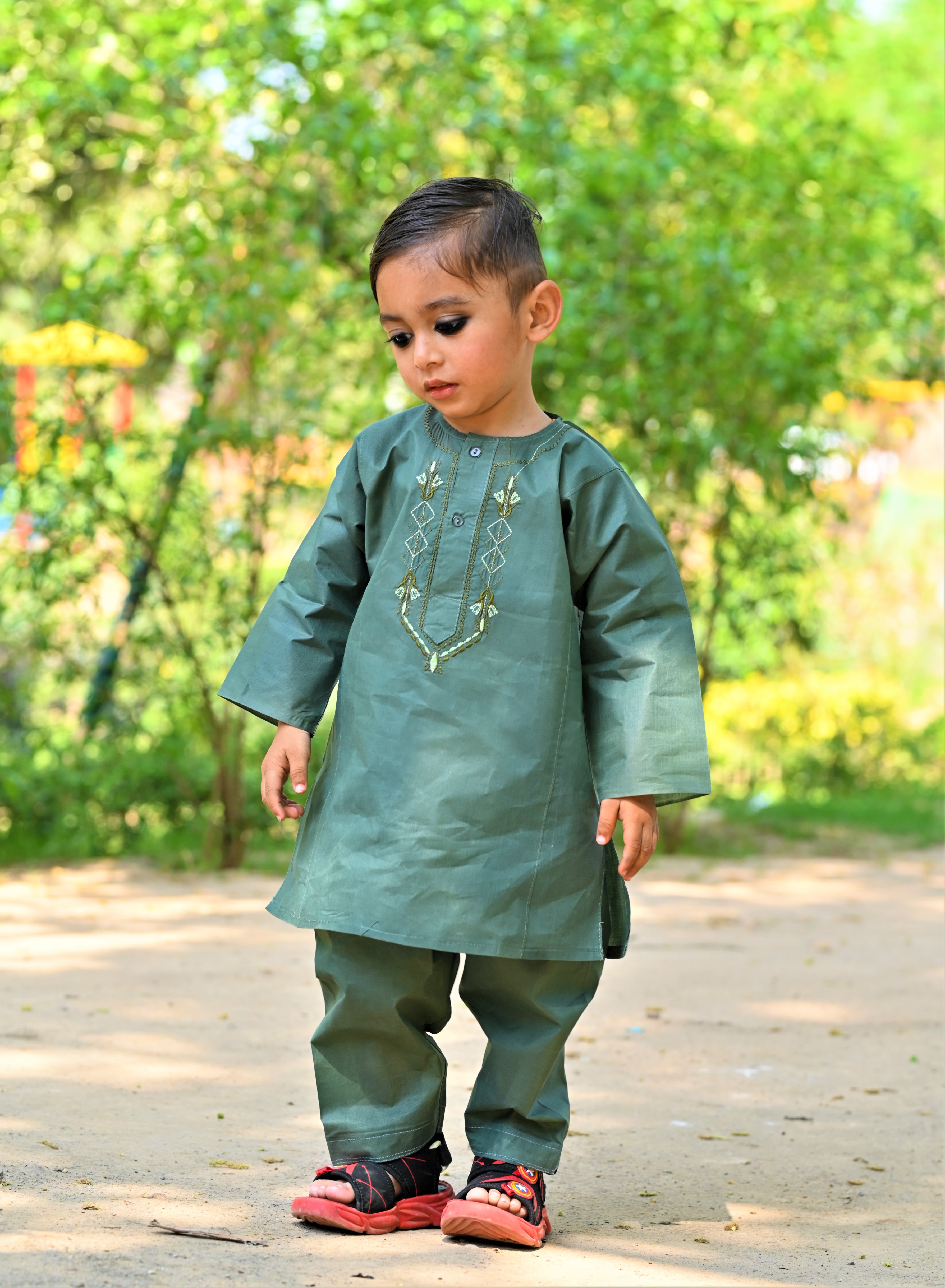 Mix Dark Green Baby Boy Shalwar Kameez β Traditional Elegance for Little Ones (2Y-5Y) A stylish and traditional Shalwar Kameez in a charming Mix Dark Green shade, featuring intricate neck embroidery. Made from soft, breathable fabric for all-day comfort, this outfit is perfect for Eid, weddings, and cultural events. πΉ Sizes: 2 Years - 5 Years πΉ Premium Fabric & Embroidery πΉ Comfortable & Durable Stitching πΉ Ideal for Special Occasions Let your little prince shine in timeless elegance! β¨