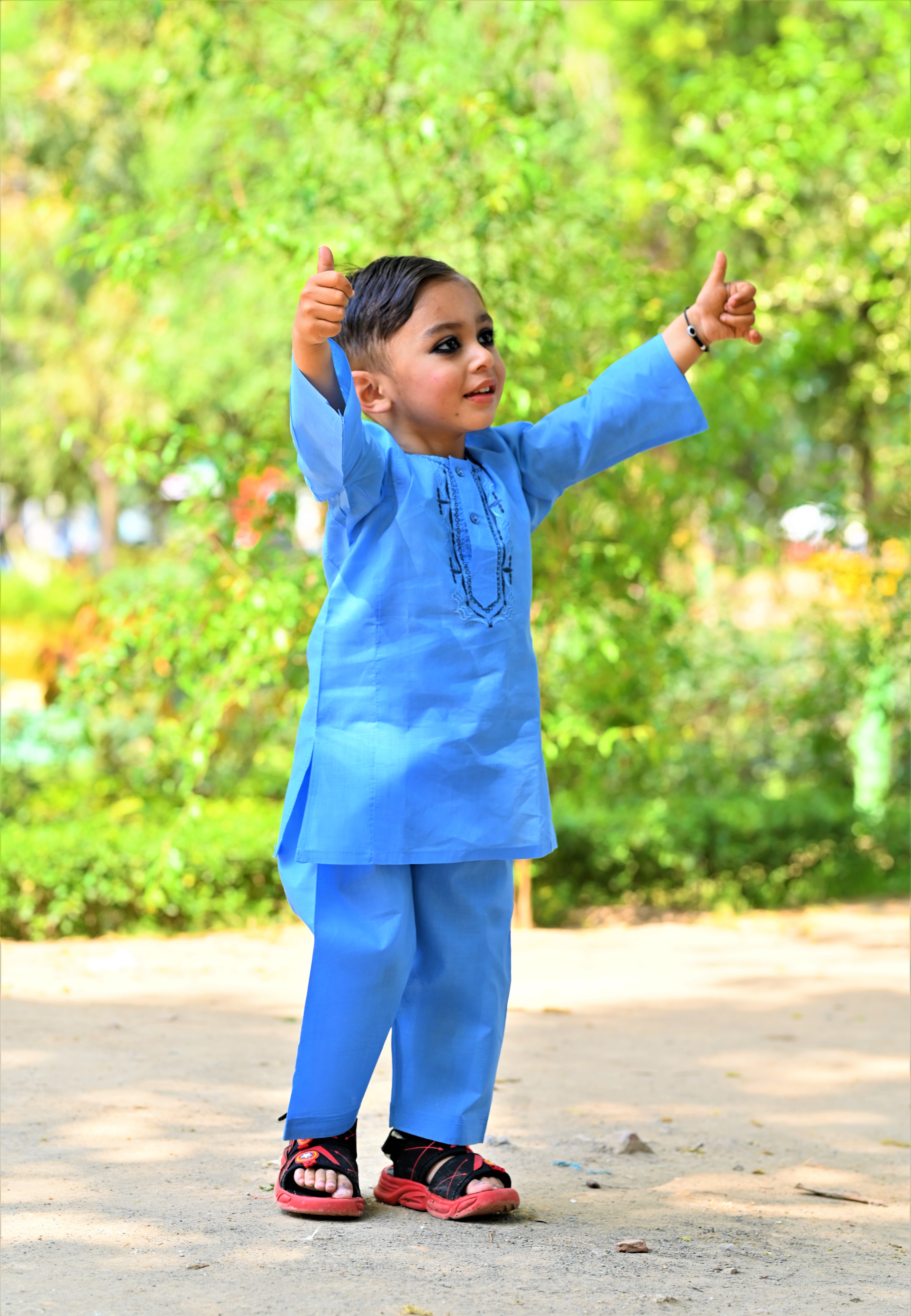 Ocean Sky Baby Boy Shalwar Kameez β Traditional Elegance for Little Ones (6M-2Y) A stylish and traditional Shalwar Kameez in a soothing Ocean Sky shade, featuring intricate neck embroidery. Made from soft, breathable fabric for all-day comfort, this outfit is perfect for Eid, weddings, and cultural events. πΉ Sizes: 6 Months - 2 Years πΉ Premium Fabric & Embroidery πΉ Comfortable & Durable Stitching πΉ Ideal for Special Occasions Let your little prince shine in timeless elegance! β¨